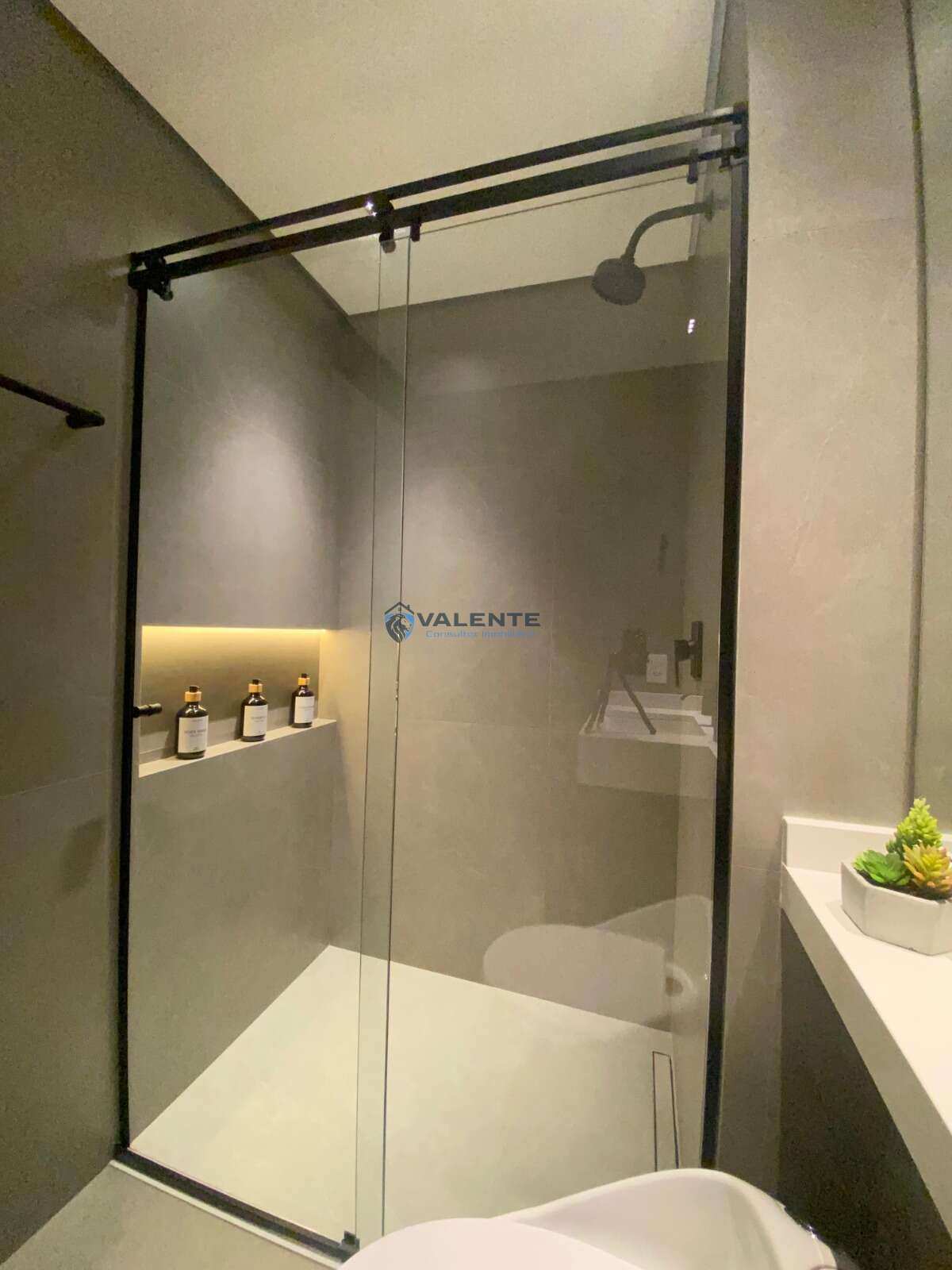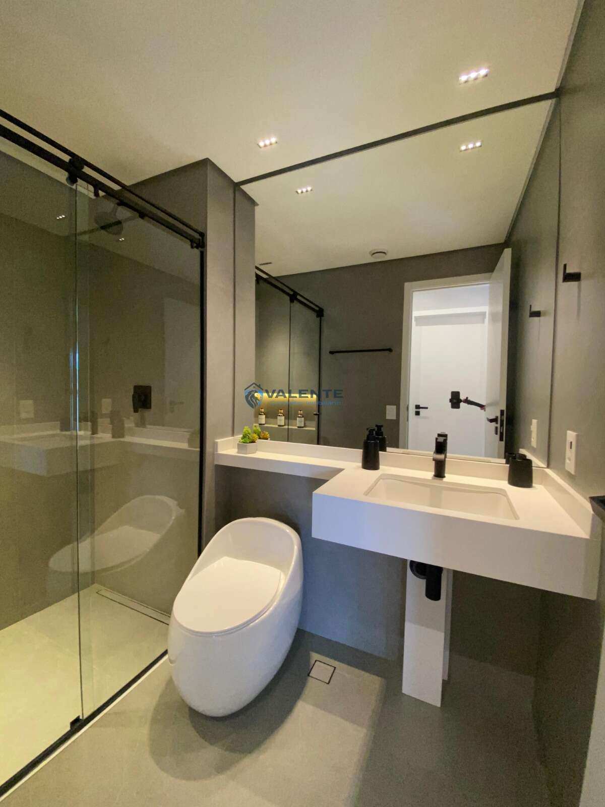 Banheiro social com acabamento refinado,