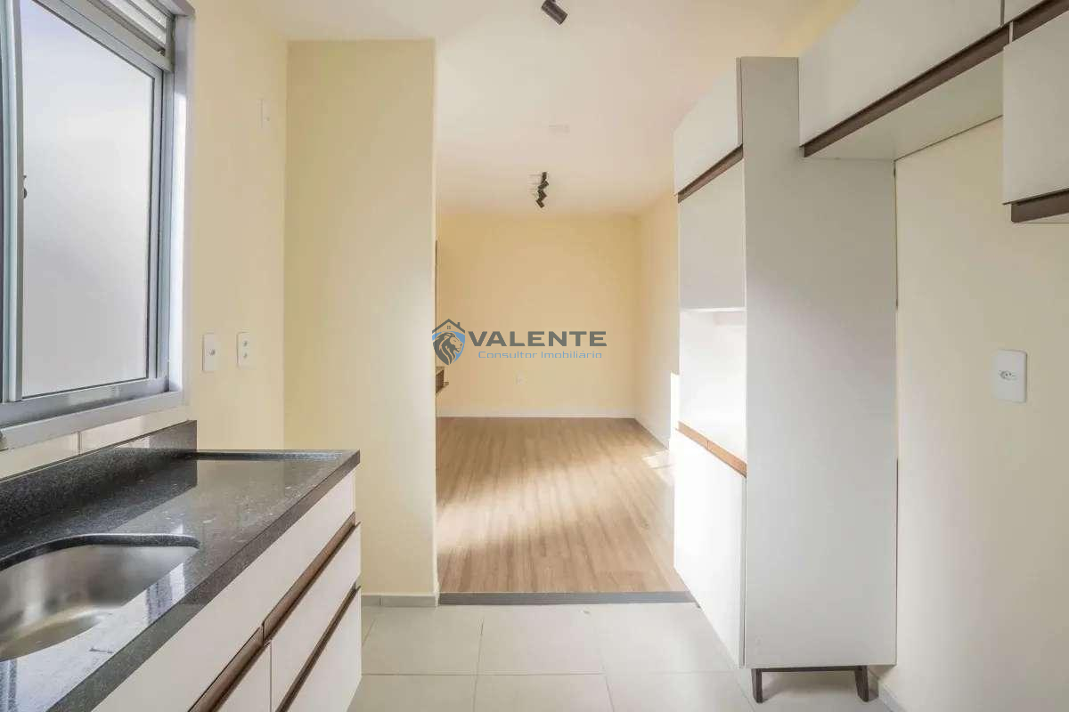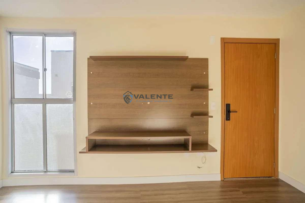 Imóvel com 2 dormitórios, sala ampla para dois ambientes com painel de TV, cozinha planejada, banheiro social com armários, área de serviço e 1 vaga de garagem.