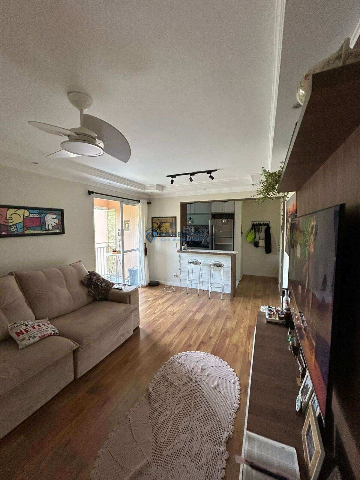 O imóvel possui 65 m² de área útil, distribuídos em 2 dormitórios, 1 banheiro, sala para dois ambientes, cozinha funcional e sacada com churrasqueira, envidraçada com vista para mata.