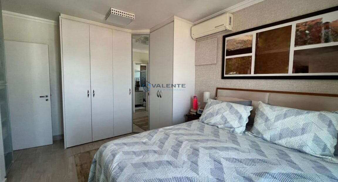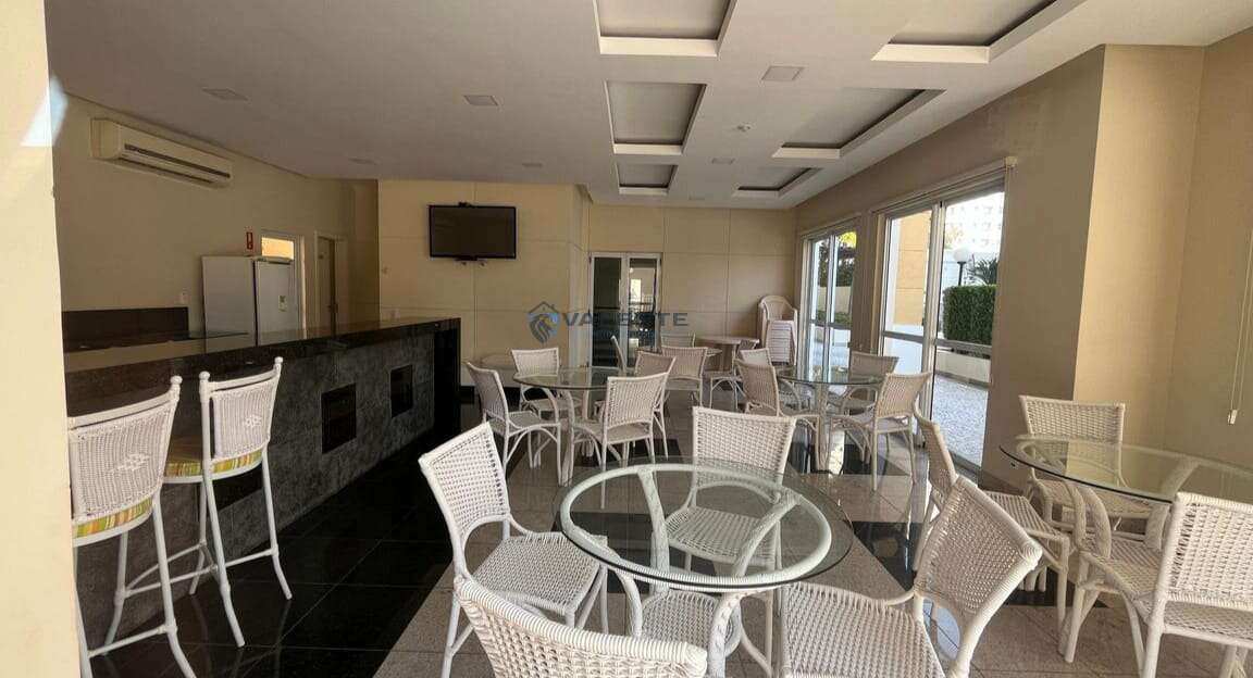 O apartamento conta com 3 dormitórios, sendo 2 suítes espaçosas e mais 1 dormitório, todos com armários planejados e ar-condicionado. O living amplo para três ambientes integra-se harmoniosamente à varanda gourmet envidraçada, com blindex e película, proporcionando uma belíssima vista do pôr do sol.