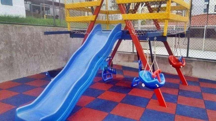 Já o condomínio com portária 24 horas, piscina, salão de festa, playground.
