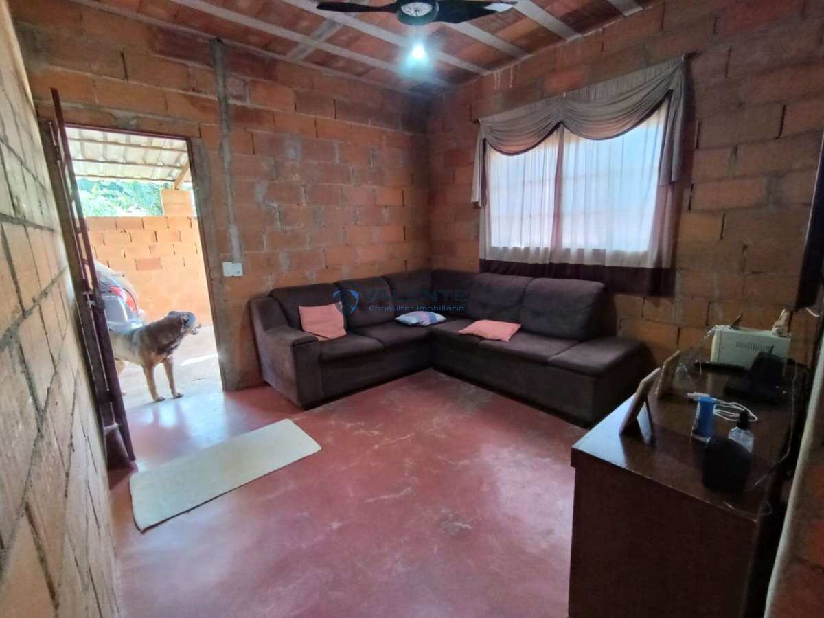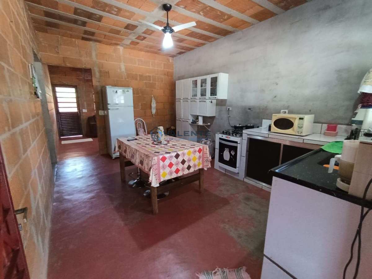 Casa com 2 dormitórios, sala, cozinha, banheiro e área de serviço, com quintal amplo, ideal para plantio ou lazer.